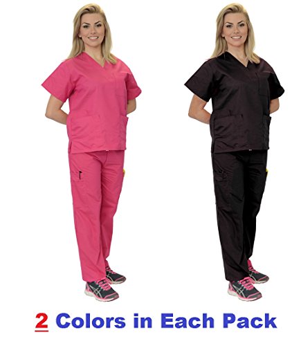Women's Solid Uniforms Workwear Scrubs Sets Top and Cargo Pants Set Value Pack