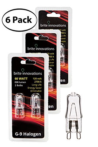 Brite Innovations G9 Halogen Bulb, 60 Watt – 6 Pack – Energy Saving - Dimmable - Soft White 2700K - 120V - Q40, CL, T4 JD Type, Clear Light Bulb