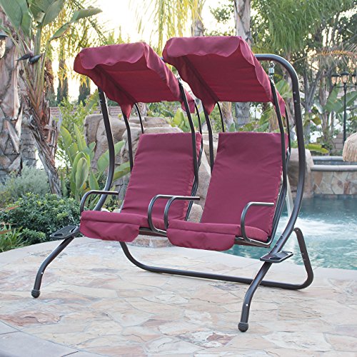 Belleze 2 Person Outdoor Patio Swing Set Armrest Cup-Holder Steel Seat Padded w/Canopy (Burgundy)