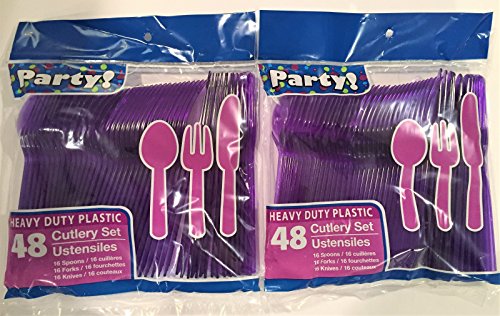 Translucent Purple Plastic Disposable Flatware - 32 Spoons, 32 Forks, 32 Knives - 2 Pkgs of 48
