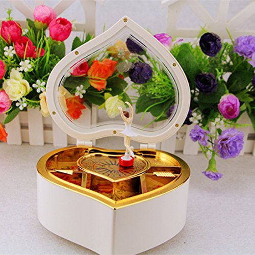 Heart Shape Mechanical Classical Ballerina Girl on the Piano Music Box (White)