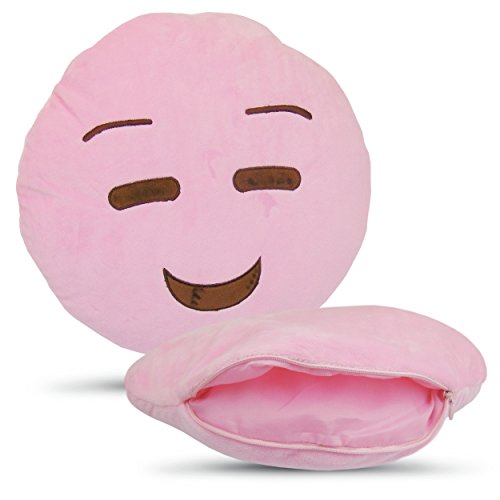 Happy Pink Emoji Pajama Pillow with Zippered Pouch (Happy Relieved Face, Pink)