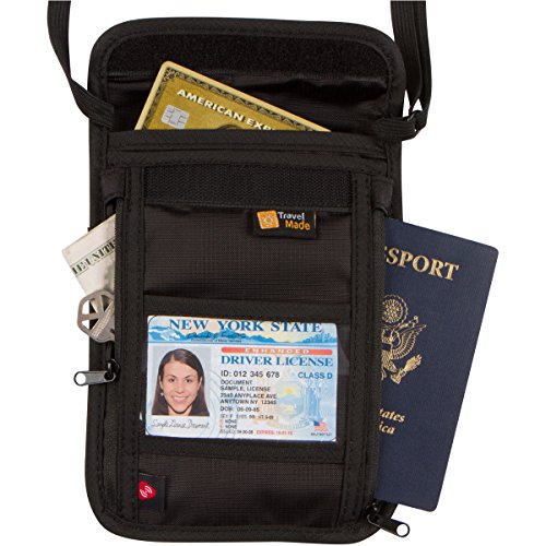 Travel Made Neck Pouch Travel Wallet w/ RFID Blocking & Passport Holder