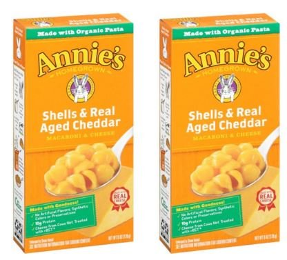 Annie's Homegrown Totally Natural Shells & Real Aged Cheddar Mac & Cheese, 6-Ounce Boxes (Pack of 2)