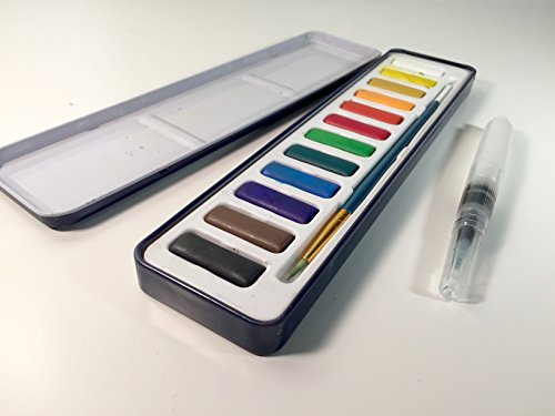 12 Watercolor Pan Set with refillable waterbrush