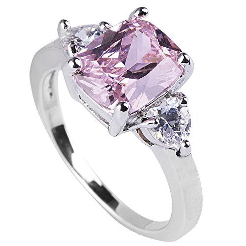 Queenwish Pink Sapphire Engagement Rings Princess Cut in Sterling Silver Wedding Jewelry Sizes 5 to 9