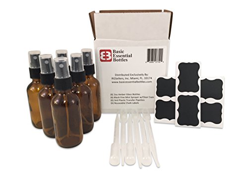 (6) 2 Ounce 2 oz Empty Amber Glass Bottles W/black Fine Mist Sprayer (6) 3ml Pipettes (6) Chalk Labels for Essential Oils, Cleaning Products, Aromatherapy