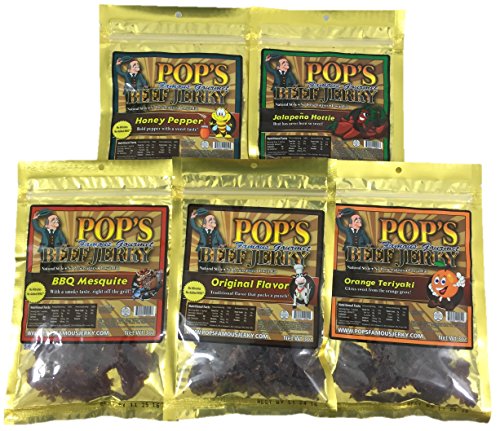 Pop's Famous Gourmet Beef Jerky - Premium Beef (3 Oz Bag) (All Five (5) Flavors)