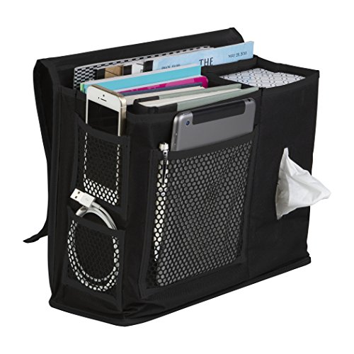 Richards Homewares 65943 Gearbox Bedside Caddy 6 Pocket Storage Mattress Book Remote (Black), 12.5x5x10", Black/Gray