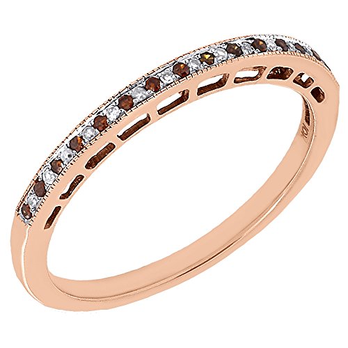 10K Rose Gold Prong Set Red & White Round Diamond Wedding Band Anniversary Ring 0.07 Cttw