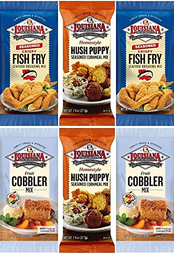 LA Fish Fry Products, Seasoned Fish Fry, Hush Puppy & Cobbler Mix Treat (Pack of 6)