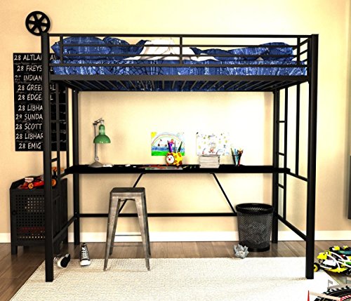 Emily Premium Twin Loft Bunk Bed With Desk, Tiny House Style, Sturdy Metal Frame and Dual Ladders, Accomodates Twin Size Mattress (Black)