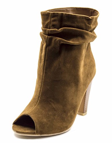 Orly Shoes Women's Wide Width Peeptoe Faux Suede Bootie Heel in Cognac Size: 8W