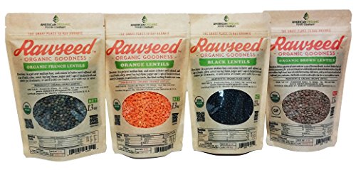 Rawseed Lentils, Black,Orange,Brown,French 4 Pack 13 Oz 1 of Each One,Organic Certified.Multicolor