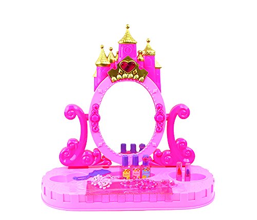 World King Toys Princess Pink Pretend Play Castle Table Top Beauty Mirror Vanity Battery Operated Toy Play Set w/ Flashing Lights, Sounds, Accessories