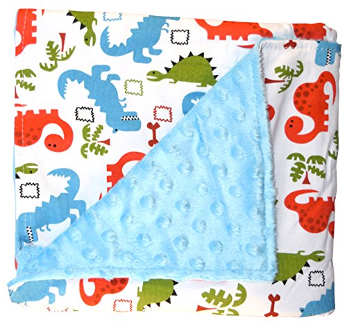 Unique Baby Soft Textured Minky Dot Blanket, Dinosaur Blue