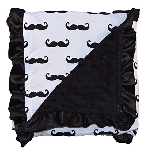 Unique Baby Soft Textured Minky Dot Blanket with Satin Trim, Mustache Black