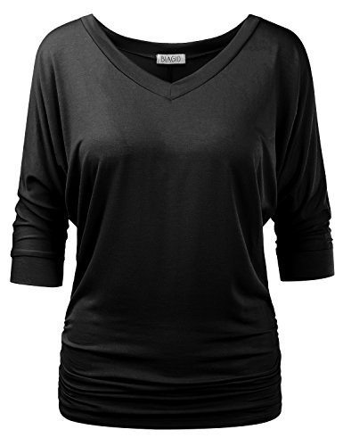 BIADANI Womens 3/4 Sleeve Dolman Drape top with Side Shirring Black XX-Large