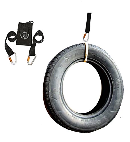 Tree Swing Hanging Strap Kit for Kids Quick Setup - Pair of Black Straps with Screw-Lock Carabiner Anchor Point + Instructions + Carry Bag