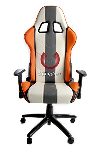 Cipher Auto Office Racing Seat - White Leather w/ Gray & Orange Stripes - Single