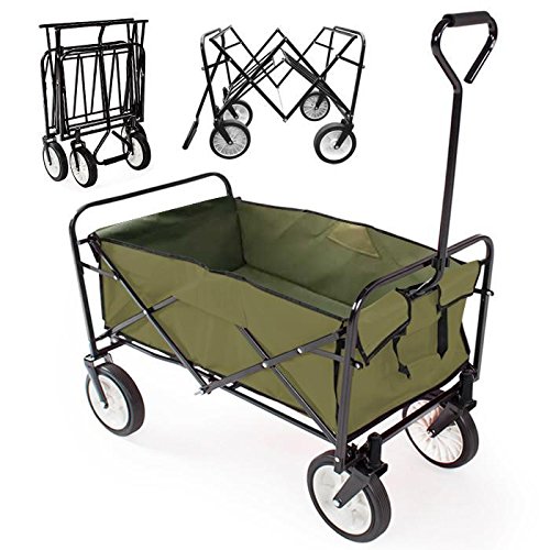 Yaheetech 600D Folding Utility Garden Wagon Cart 32.5" L x 20.5" W x 24.4" H (Olive)