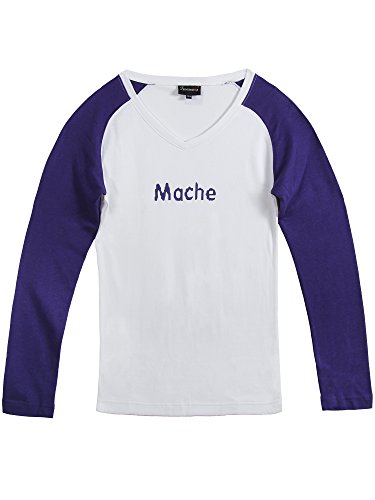 D&P Women's 100% Cotton Pajama Tops Long Sleeve V Neck (M, White & Blue)