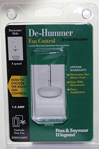 TradeMaster by Pass & Seymour Legrand DSSC5PWV 5 Amp Slide Ceiling Fan Control with Decorator Wall Plate, White (1.6 AMP)