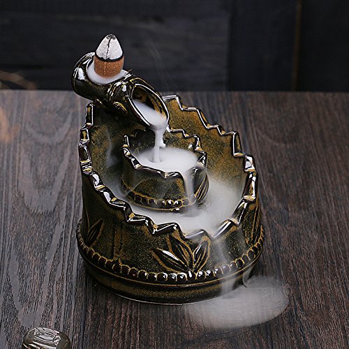 Gift Pro ® Ceramic Backflow Incense Tower Burner Statue Figurine - Free Gift:20 Pcs Incenses, Fragrance Random (Style 18)
