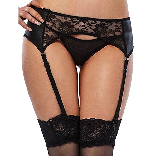 Women 3Pcs Sexy Garter Belt Panties and Long Stockings Lingerie Set