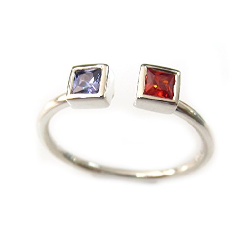 ZilverPassion Square 3mm Double Birthstone Sterling Silver Stacking Ring, Choose your gemstone, Size 2-15