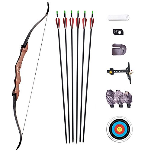 ATROPOS-168 Archery Recurve Bow Set Right Handed Bow,18-32lb Draw Weight With All Accessories (Wood Grain/Brown)