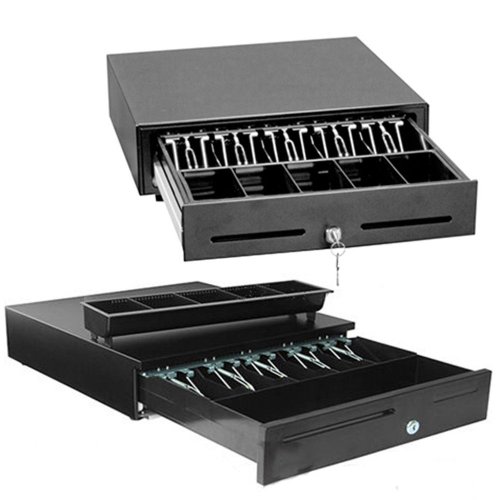 2xhome - 16" Point of Sales POS System Cash Drawer 24v Register Heavy Duty RJ11 RJ12 Key-Lock 5 Bills and Removable 5 Coin Tray Black