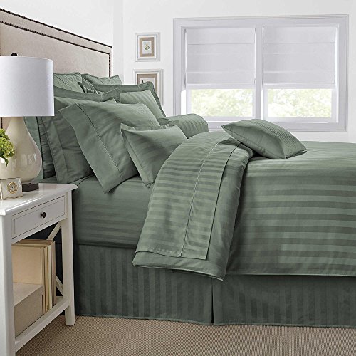 Bamboo Comforter (Striped) - Double Filled Super Plush Goose Down Alternative Comforter (HypoAllergenic, Eco-Friendly) (Queen, Green Sage)