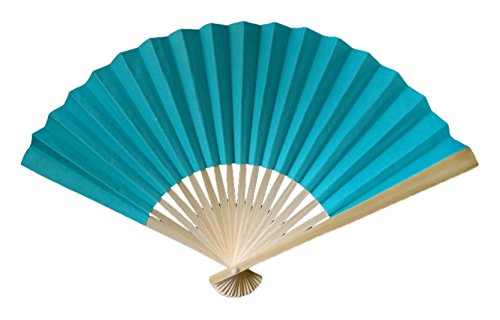 Quasimoon N9HF2-WB 10-Pack Paper Hand Fans for Weddings, 9 Inch Premium, Water Blue