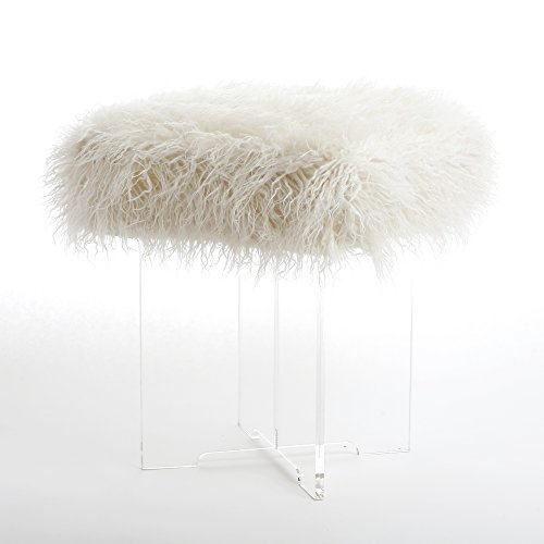 Best Home Fashion Mongolian Lamb Faux Fur Acrylic Cross Leg Stool - 16" x 16"x 17.5" (White)