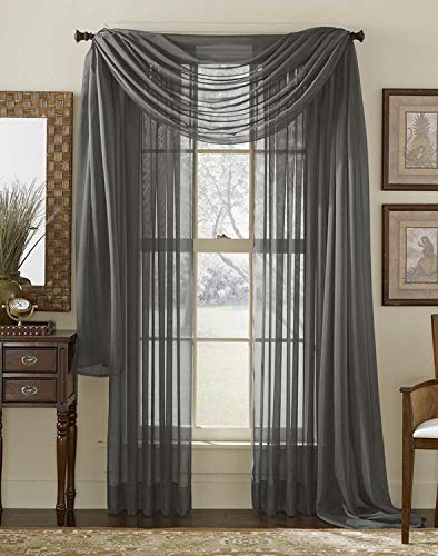 HLC.ME Charcoal Grey Sheer Voile Window Curtain Scarf - Valance - Fully Stitched & Hemmed - 56" x 216" Inch Long