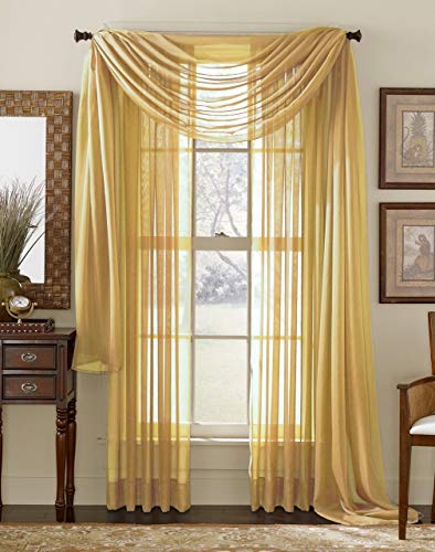HLC.ME Gold Sheer Voile Window Curtain Swag Scarf - Valance - Fully Stitched and Hemmed - 55 x 216 inch Long