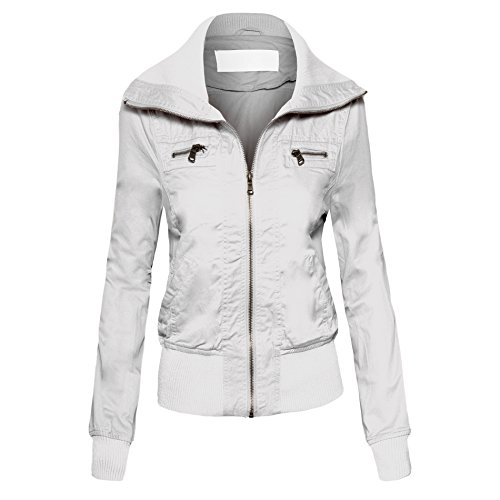 Women's Zip Up Lapel Collar Long Sleeve Cotton Rib Knit Trim Casual Moto Jacket