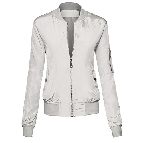 Women's Classic Zip Up Pocket Sleeve Lightweight Fitted Nylon Bomber Jacket