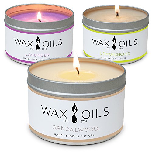Scented Candles - Lavender, Lemongrass & Sandalwood (Pack of 3) Soy Wax Aromatherapy, 8oz