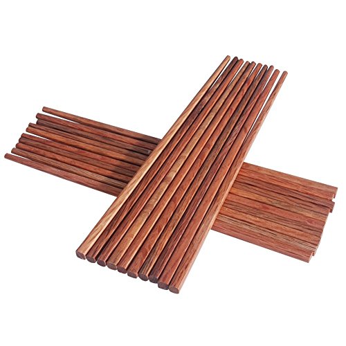 Reusable Chinese Wooden Chopsticks,Pack of 10, Natural Health,Smooth Surface, Premium Material, 10.6-inch Long,Brown2