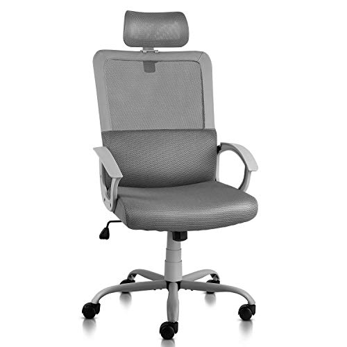 Smugdesk Ergonomic Office Chair High Back Mesh Office Chair Adjustable Headrest Computer Desk Chair for Lumbar Support, Grey