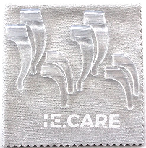 High Quality Clear Anti-Slip Glasses Silicone Ear Hook Retainer- 4 Pairs (2 Different Sizes) + 1 Microfiber Cleaning Cloth