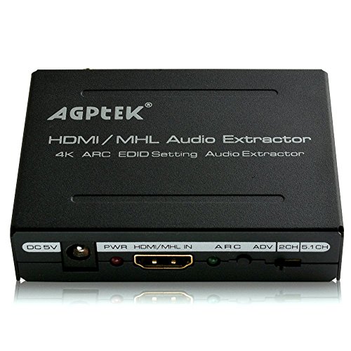 AGPtek HDMI Audio (SPDIF+R/L) Extractor Support Ultra HD 4K x 2K /ARC / Toslink Optical Audio Output + RCA L/R Audio Converter - Support Full HD 1080P, 3D, 4K x 2K Resolution