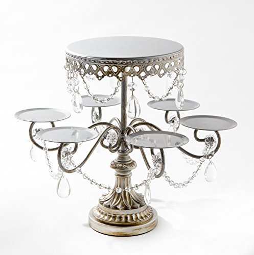 Opulent Treasures Rosebud Chandelier 7 Plate Metal Cupcake, Cake Pop, Mini Cake Wedding Dessert Tiered Tower (Silver)