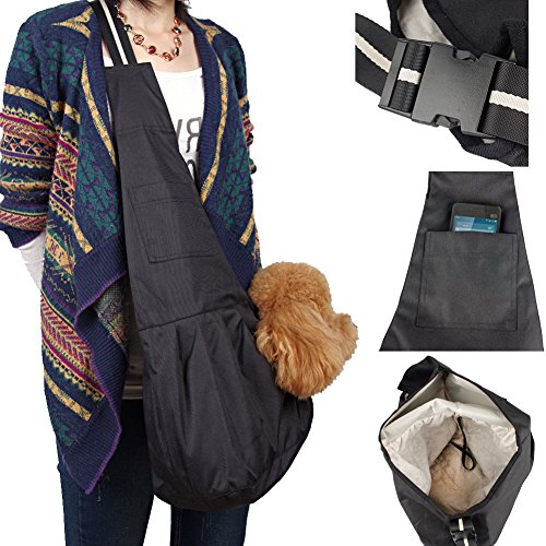 3 Sizes S/M/L Canvas Sling Pet Dog Puppy Cat Carrier Tote Slingle Shoulder Bag. (Large, Black)