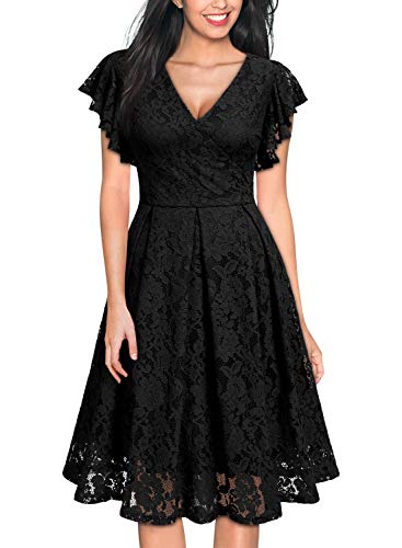MISSMAY Women's Retro V-Neck Ruffle Lace Party Dress