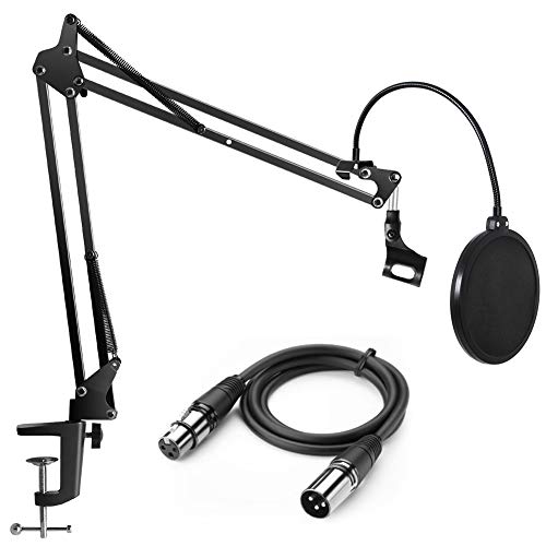 InnoGear Heavy Duty Microphone Stand with Upgraded 9.8 Feet XLR Cable Male to Female and Dual Layered Mic Pop Filter Suspension Boom Scissor Arm Stands for Condenser Microphone & Other Mic