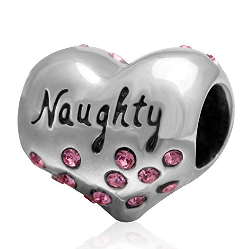 Pink "Naughty" or "Nice" Heart Crystal Charm 925 Sterling Silver Bead Fit Pandora Charms