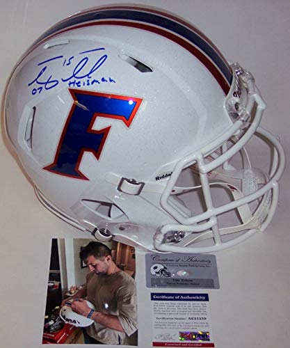 Tim Tebow Autographed Hand Signed Florida Gators White Speed Full Size Authentic Football Helmet - with 07 Heisman Inscriptions - PSA/DNA